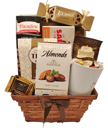 Offrez un moment de délice avec ce panier cadeau.Vous y trouverez : Biscuits sucre fin fondante en bouche, Truffes pour les amateurs de douceurs chocolatées, Pirouline, biscuit artisanal les Sablées de l'Ostie d'Français, Chocolat chaud, Amandes enrobées de chocolat et thés raffinés, idéals pour accompagner des moments de relaxation.