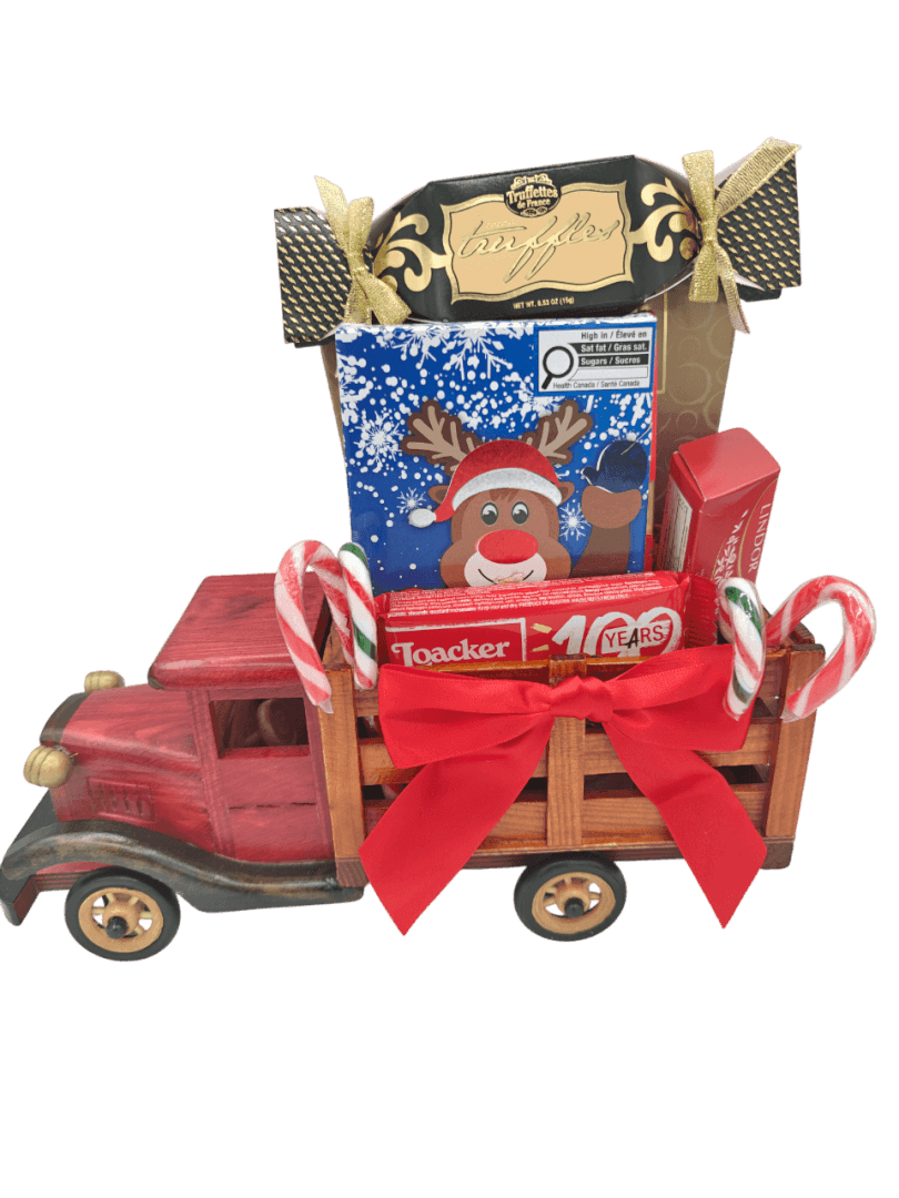 Un camion en bois rempli de douceurs chocolatées, de truffes fondantes, de gaufrettes croustillantes et de friandises festives. Le parfait mélange entre plaisir des yeux et bonheur du palais !